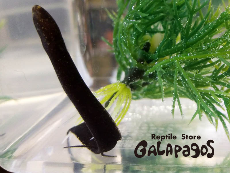 大半はアフリカ原産である肺魚の仲間にありながら、本種は唯一の南米原産。1837年に初記載されたときには魚という分類ではなく爬虫類(現在の両生類)として扱われていたんだから、ウチみたいなショップにはもってこいだよね~♪ということで入荷しました。現在は冷凍アカムシをエサにやってます。