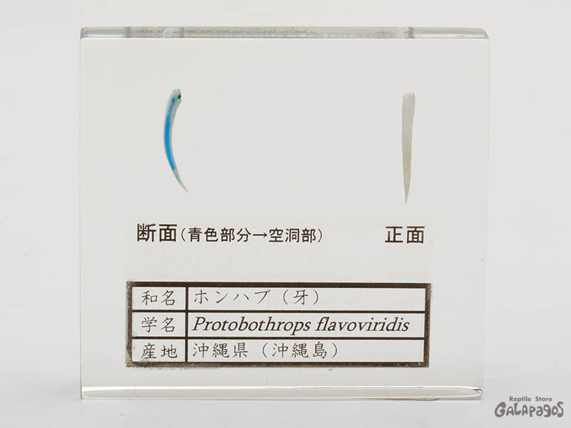 これはホンハブの毒牙が毒液を注入するために注射針のような構造になっていることを解説している標本。