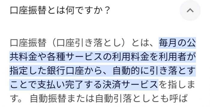 やっぱり口座振替ってのは自動引き落としのことで間違ってないよね!