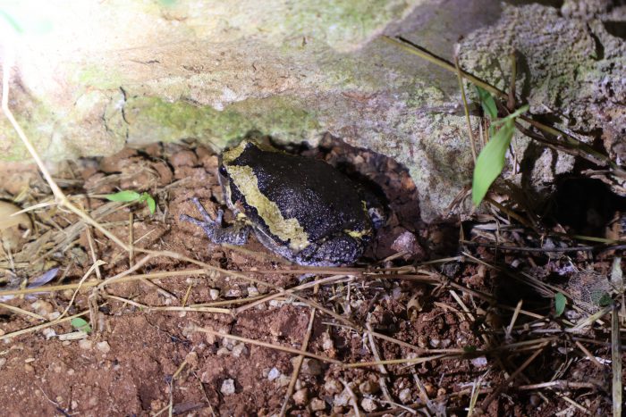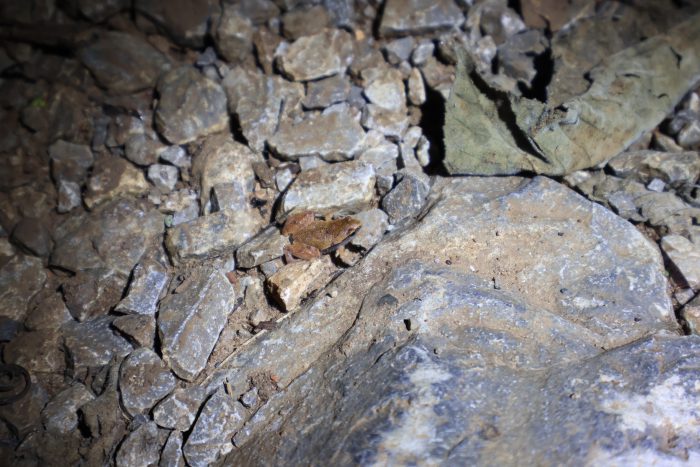 そんなこんなしながら、車を停めた場所に戻ろうとしている途中で見つけたのはアジアジムグリガエル!