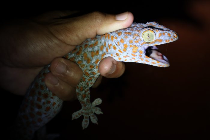 ところで日中にビア氏へ「トッケイを見てみたいんだよね」と言ったら、笑いながら「夜には絶対に見られるよ♪」とのことだったのですが、そのタイミングがいよいよ来ました!!