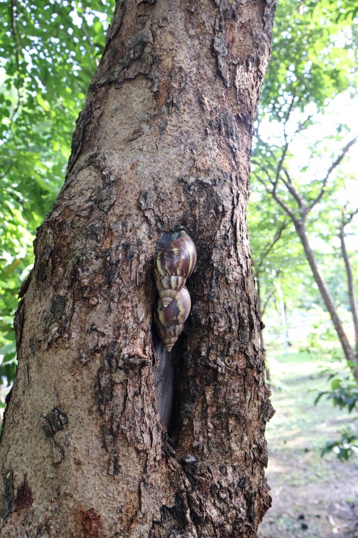 アフリカマイマイが木に登っていたり、、、