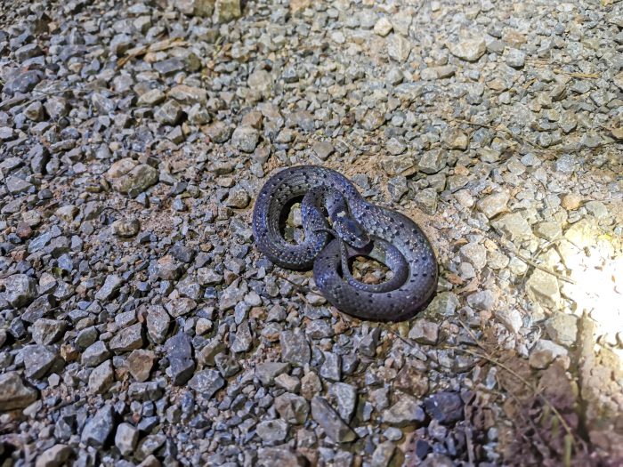 カタツムリやナメクジを食べることで知られるセタカヘビの仲間で、どうやらそこらじゅうにいるアシヒダナメクジなんかも捕食しているそうです。